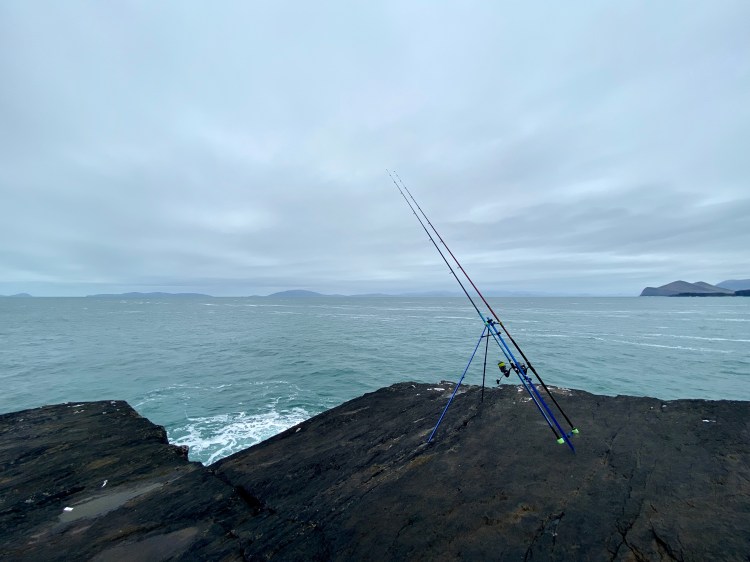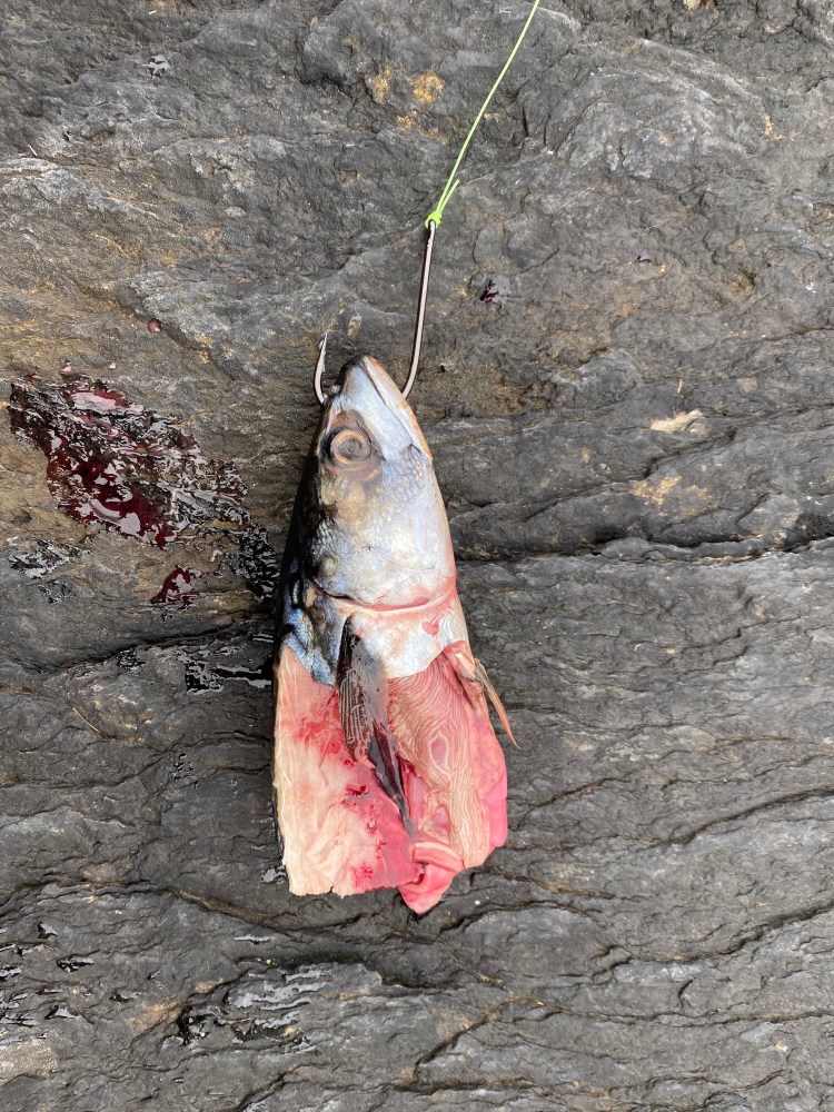 It was at this point that the monsters of the deep had roused from their lairs in the cliff face, and with an almighty rattle and pull my entire rod rest tumbled over towards the edge of the cliff. A friend managed to grab the rod to stop it being pulled out to sea, while I climbed up from the casting platform that I was spinning on below and ran over to try and reel the beast in. The weight was unbelievable! I could feel the fish pulling away from where I wanted it and slowly creeping back in towards the cliff. Snagged! I had been pulled back into the monster’s lair, line snapped and rig lost, I quickly ran over to my tackle box and re-attached a new rig, lead and mackerel head. Dropping it back down the side of the cliff again, this time a little further out to try and give me more of a window to pull the beast to the surface before it could retreat into it’s cliff hole. My lovely soft-tipped beach rods which are great for spotting the tiniest of bites were no match for these huge weights, the bend in the rod was far too forgiving for the fish and didn’t allow me to control the fight.